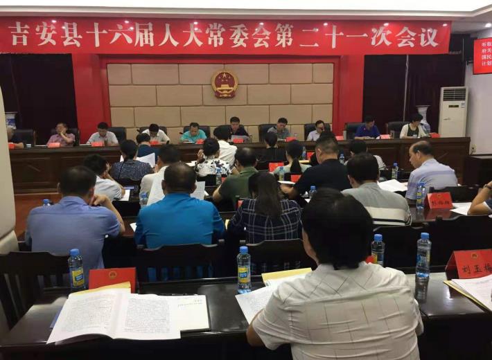 8月29日,吉安县十六届人大常委会第二十一次会议召开,县人大常委会主任张迪俊主持会议,副主任王惠清、罗学清、彭飞、刘炎香、张顺生、曾诚出席会议。县政府副县长王桃香,县法院院长邹峰阳,县检察院负责同志列席会议。