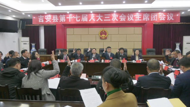2月20日下午,吉安县十七届人民代表大会第三次会议召开主席团第一次会议。县人大常委会副主任罗勤华主持会议。
