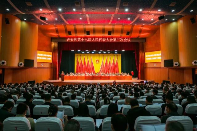2月21日,吉安县第十七届人民代表大会第三次会议在县影剧院隆重开幕。来自全县各行各业的县人大代表肩负全县人民的期待和重托出席会议,认真履行宪法和法律赋予的神圣职责。